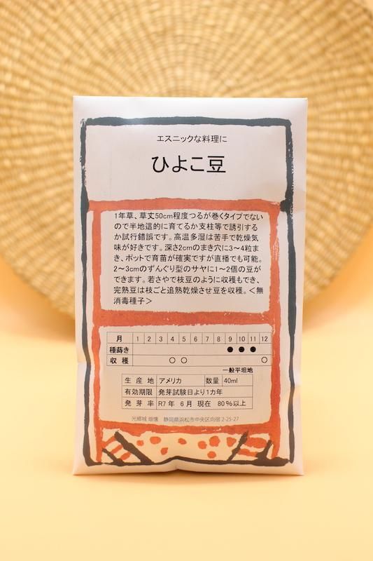 高温多湿が苦手で乾燥気味が好き。主に完熟豆を収穫するが若さやは枝豆のように食べられる。スパイスカレーでは必須の豆、油は少量でも豆の油分でコクが出ます。草丈50cm程度のつるは巻かないタイプ。さやがひよこの形で可愛い。